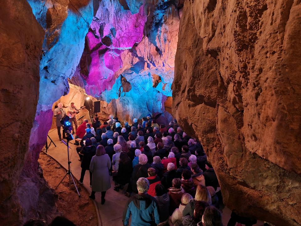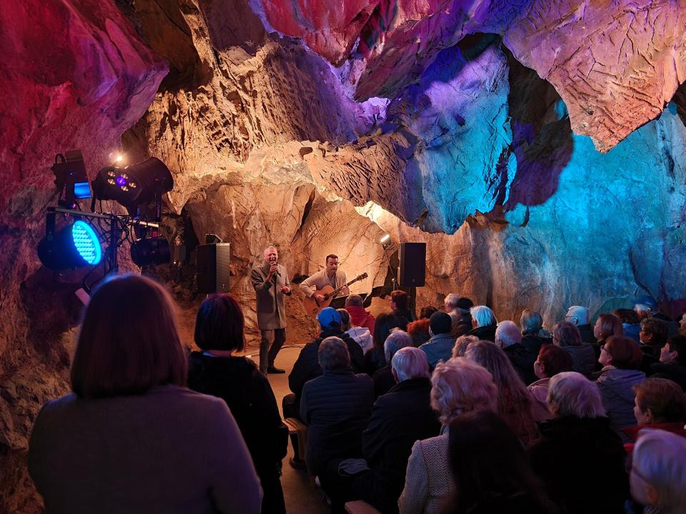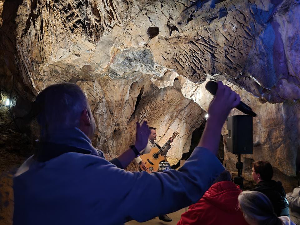 Davide Mattioli a italské hity v Mladečských jeskyních, říjen 2022