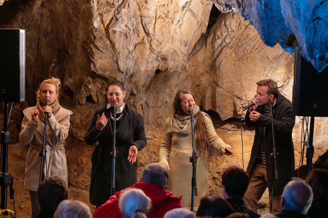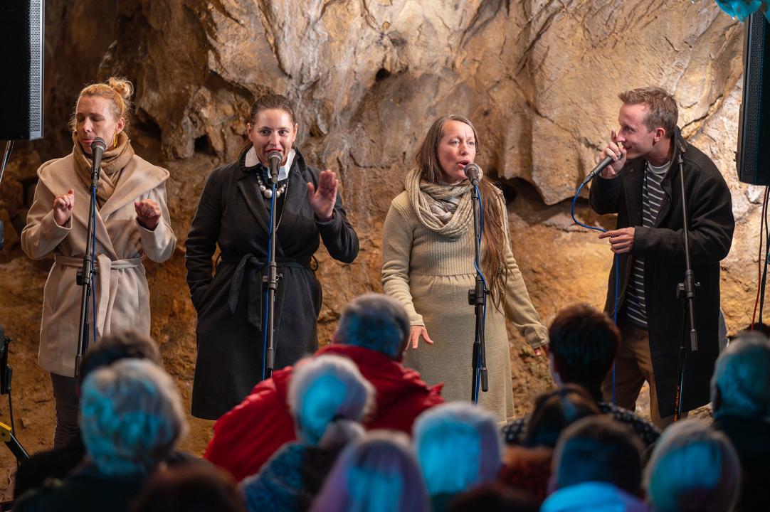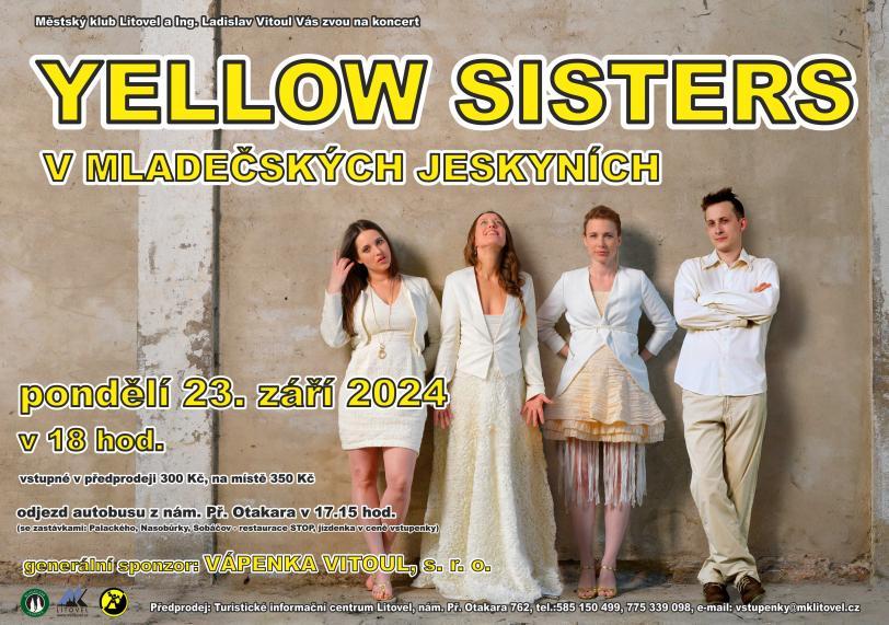 Yellow sisters je původně ženská vokální skupina, která svým zpěvem prochází s lehkostí napříč žánry soulu, funku, r'n'b, world music, jazzu i reggae. V pondělí 23. 9. 2024 odzkoušela akustiku Mladečských jeskyní.